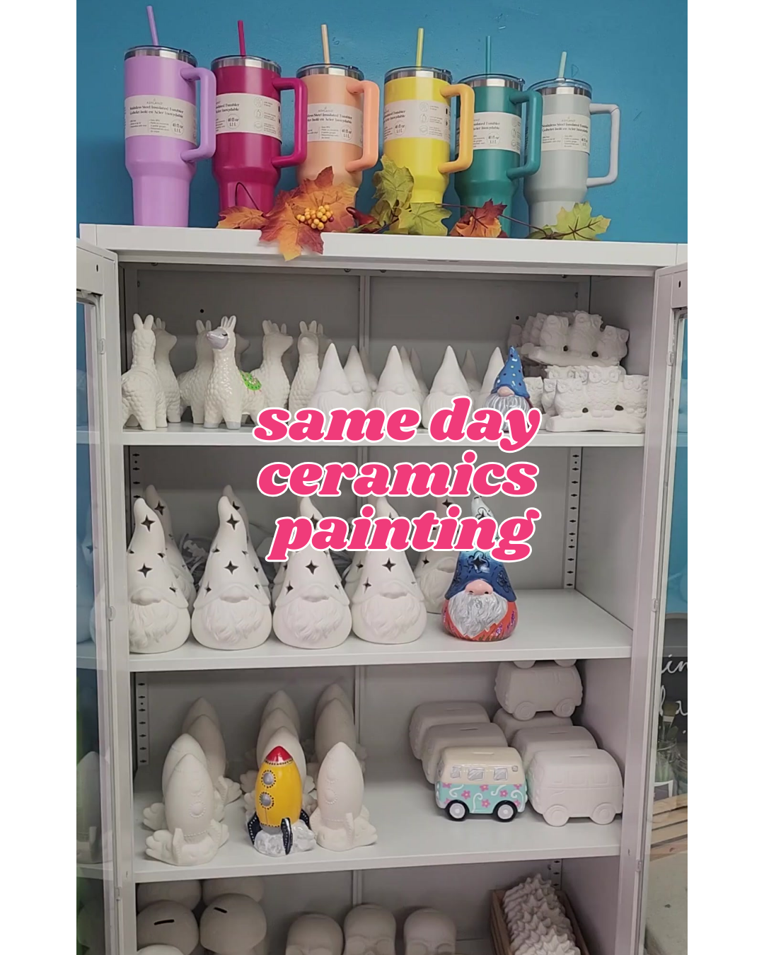 Drop in weekends for d.i.y. painting hours. We've got a wide variety of ceramics, laser-cut wood signs, canvas paintings, wine glasses, beer mugs, coffee cups, aluminum tumblers, tote bags, suede hats, doormats, and more!